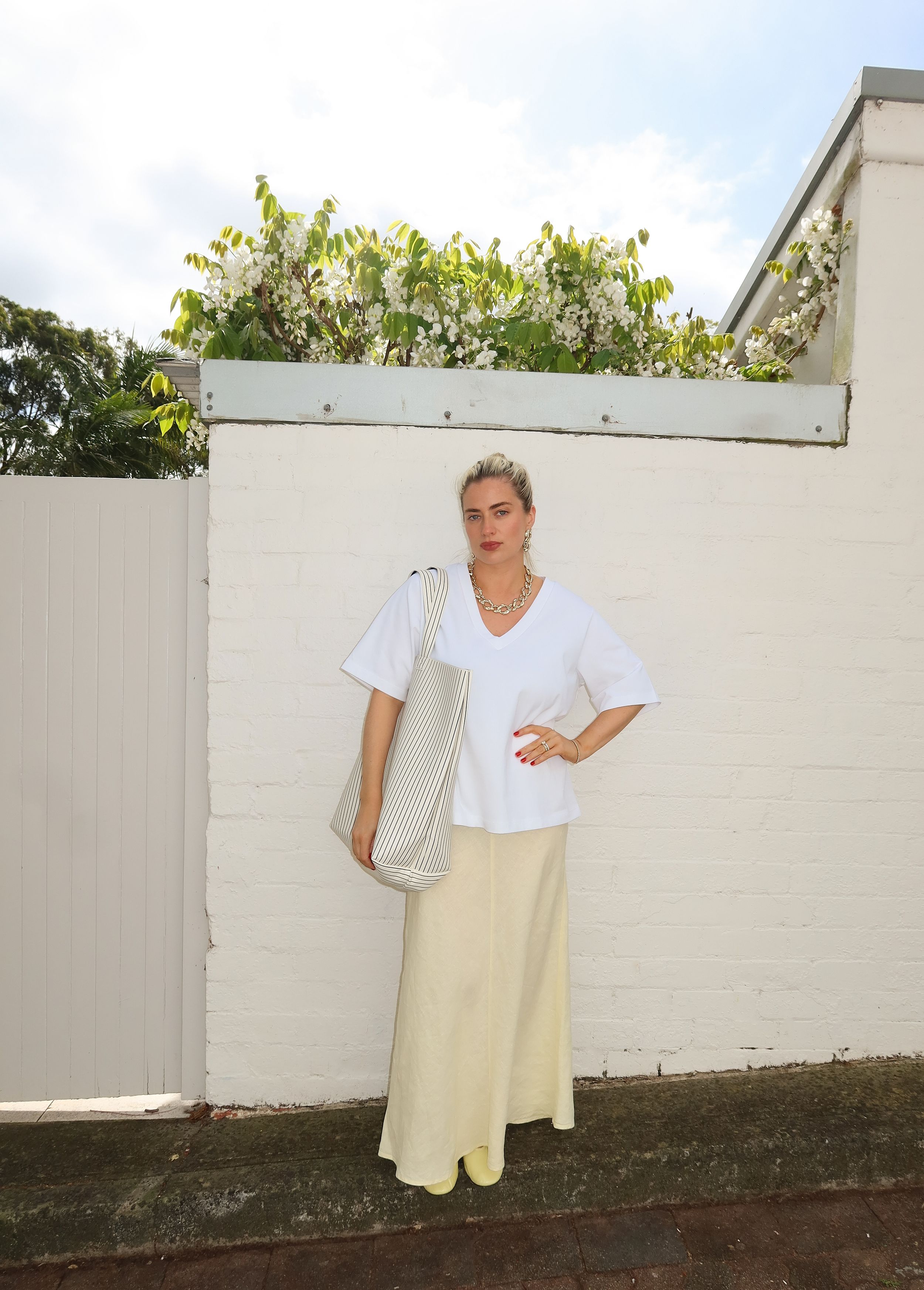 Kayla is 170cm tall and wearing a size 10 AU
